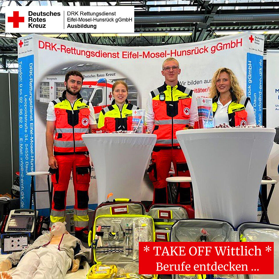 Der Rettungsdienst ist nicht nur spannend, sondern auch vielseitig und zukunftssicher. Welche Möglichkeiten dieser Beruf bietet, konnten Besucherinnen und Besucher der Ausbildungsmesse „TAKE OFF 2025“ am 14. und 14. September 2025 im Wittlicher Eventum hautnah erleben.